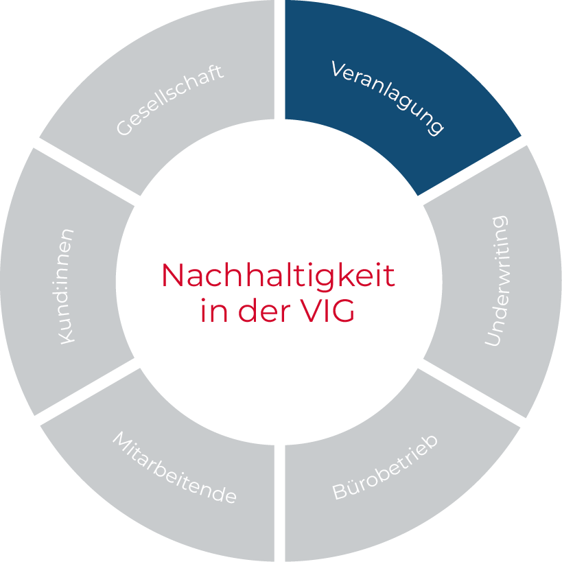 Das VIG-Nachhaltigkeitsprogramm definiert sechs Wirkungsfelder, in denen die gruppenweiten Nachhaltigkeitsbestrebungen gebündelt werden.