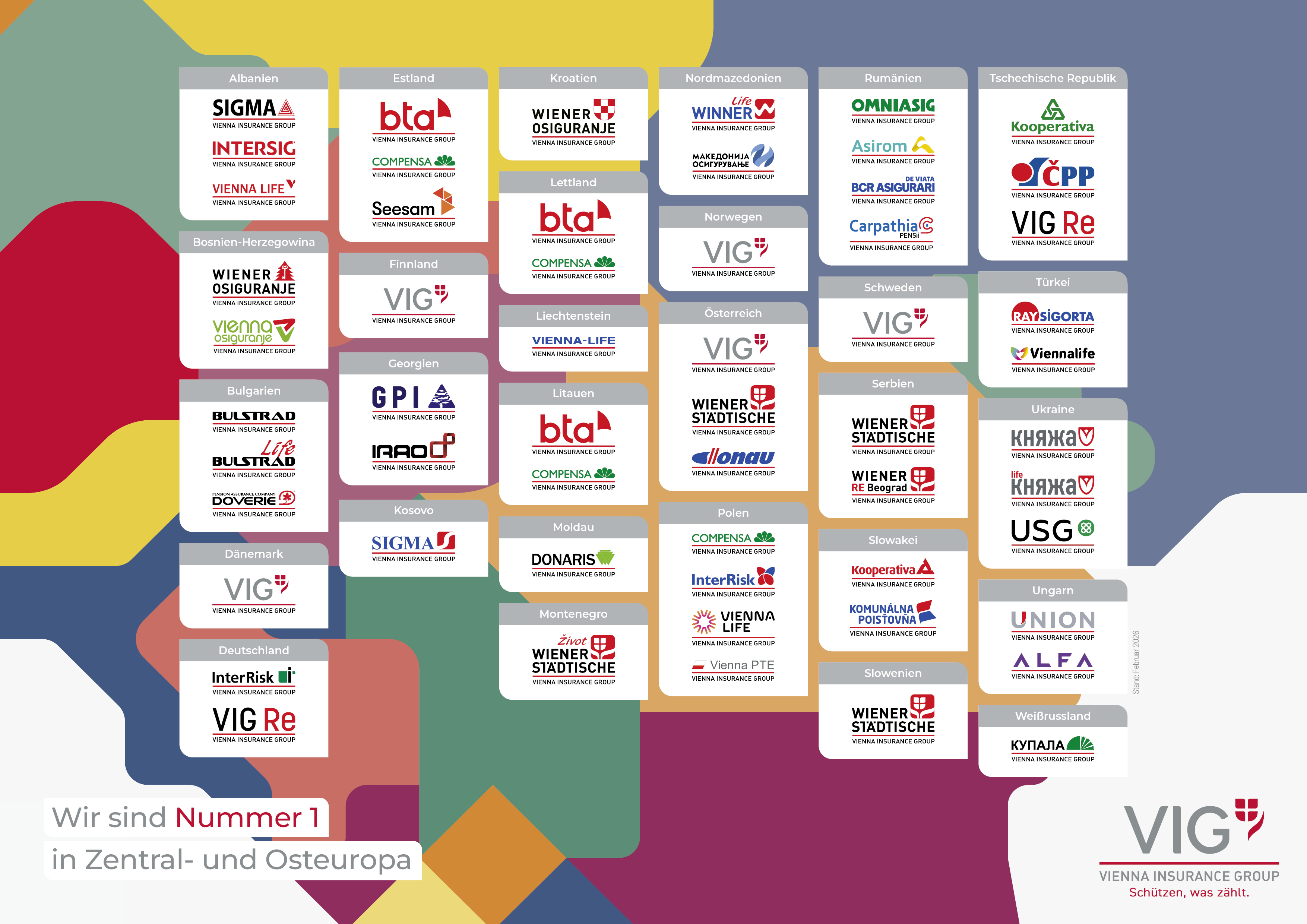 Die Vienna Insurance Group hat sich als Pionier im Versicherungsgeschäft nach der Ostöffnung zur führenden Versicherungsgruppe in Zentral- und Osteuropa entwickelt. Eine Gruppe mit rund 30.000 Mitarbeiter:innen, mehr als 50 Versicherungsgesellschaften und Pensionskassen in 30 Ländern bedeutet eine hohe Diversität. Doch nicht nur das macht die VIG besonders vielfältig. Mit einer lokalen Mehrmarkenpolitik und einer stark lokal orientierten Unternehmensstrategie unterscheidet sich die VIG klar von anderen internationalen Versicherungsanbieter:innen.